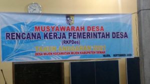 Musdes Rencana Kerja Pemerintah Desa th..2021 di wilyah kec. mijen dilaksanakan pada bulan september 2020 oleh 15 Desa yang berada di kecamatan Mijen dalam kegiatan tersebut oleh Camat Mijen berkoordinasi dengan Kepala Desa yang berada di wilayah kecamatan Mijen untuk menentukan hari dan tanggal dilaksanakanya sehingga camat mijen membuat schudulle jadwal pelaksananya dan dalam pelaksanaan musdes tersebut rata-rata masyarakat berantusias mengusulkan di wilayah/lingkunganya untuk dibangun namun, dari pemerintah desa tetap melihat azaz skala perioritas sesua keadaan yang berada di lokasi lingkungan tersebut.