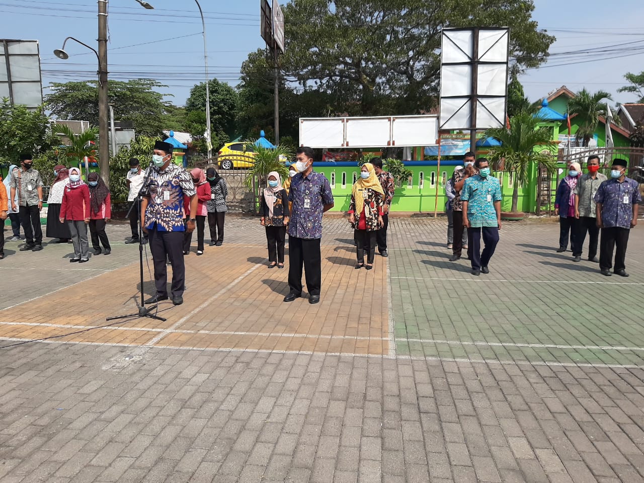 Apel pagi rutin Kecamatan Mijen hari Kamis tanggal 20 Mei 2021 di halaman Kantor Kecamatan Mijen setiap pagi melaksanakan kegiatan rutin yaitu apel pagi, kegiatan apel pagi di mulai pukul 07.30 WIB,adapun peserta apel pagi dari Pegawai/ Dinas Instansi Kecamatan Mijen, Perangkat Desa se Kecamatan Mijen sekaligus tugas piket wira – wiri Desa, selaku pimpinan apel pagi hari ini dari Kasi Permas Kecamatan Mijen dan Komandan apel pagi dari staf/ pelaksana BPP Pertanian Kecamatan Mijen, kegiatan apel pagi tetap menerapkan protokol kesehatan dengan selalu memakai masker, mencuci tangan dan menjaga jarak.