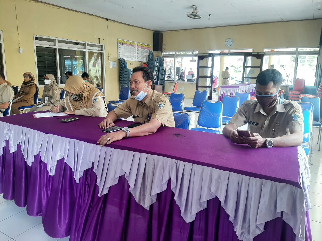 Rapat Koordinasi Sekretaris Desa Se Kecamatan Mijen hari Senin tanggal 10 Mei 2021 di ruang aula pertemuan Kecamatan Mijen setiap hari senin melaksanakan kegiatan Rakor Sekdes se Kecamatan Mijen, kegiatan ini di laksanakan setelah apel pagi, hadir dalam kegiatan ini Camat Mijen, Sekretaris Kecamatan Mijen dan pejabat struktural Kecamatan Mijen dan Sekdes se Kecamatan Mijen, kegiatan ini bertujuan saling shearing antara Pemerintah Kecamatan dengan Pemerintah Desa dan juga memperoleh informasi yang sangat penting dari pemerintah Kabupaten kemudian di samapaikan ke Pemerintah Kecamatan dan di tindak lanjuti oleh Desa , Rakor Sekdes tetap menerapkan protokol kesehatan dengan selalu memakai masker, mencuci tangan dan menjaga jarak.