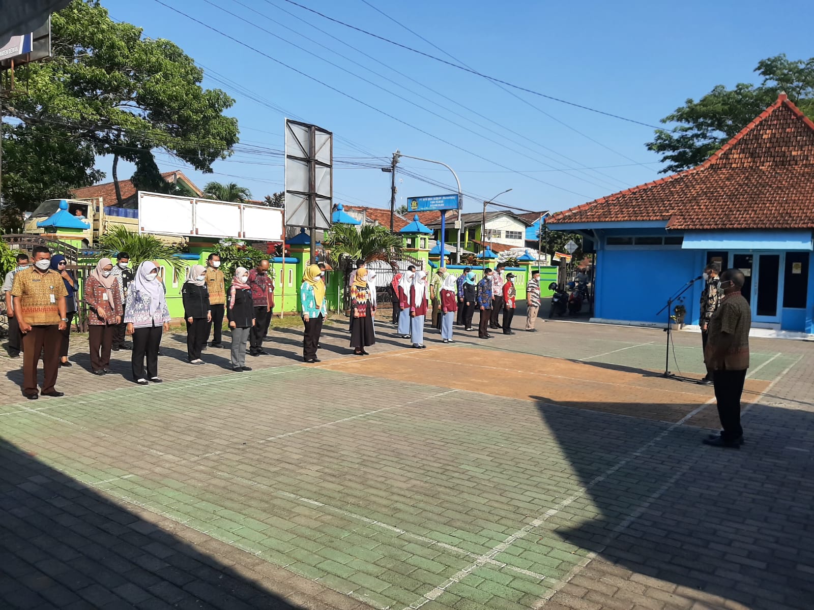 apel pagi rutin Kecamatan Mijen Kabupaten Demak Hari Kamis tanggal 14 Oktober 2021 halaman Kantor Kecamatan Mijen setiap pagi rutin melaksanakan kegiatan apel pagi, tepat pukul 07.30 WIB apel pagi di mulai, di ikuti oleh seluruh Pegawai Kecamatan Mijen, seluruh Pegawai Dinas Instansi di lingkungan Kecamatan Mijen, serta Perangkat Desa se kecamatan Mijen sekaligs tugas piket wira – wiri, selaku Pimpinan apel pagi Hari ini yaitu Kasi Kesra Kecamatan Mijen dan komandan apel pagi dari Staf Kecamatan Mijen , setiap hari Senin, Selasa dan Kamis seluruh peserta apel pagi mendengarkan Lagu Indonesia Raya, kegiatan apel pagi tetap mematuhi protokol kesehatan dengan selalu memakai masker, mencuci tangan dan menjaga jarak.