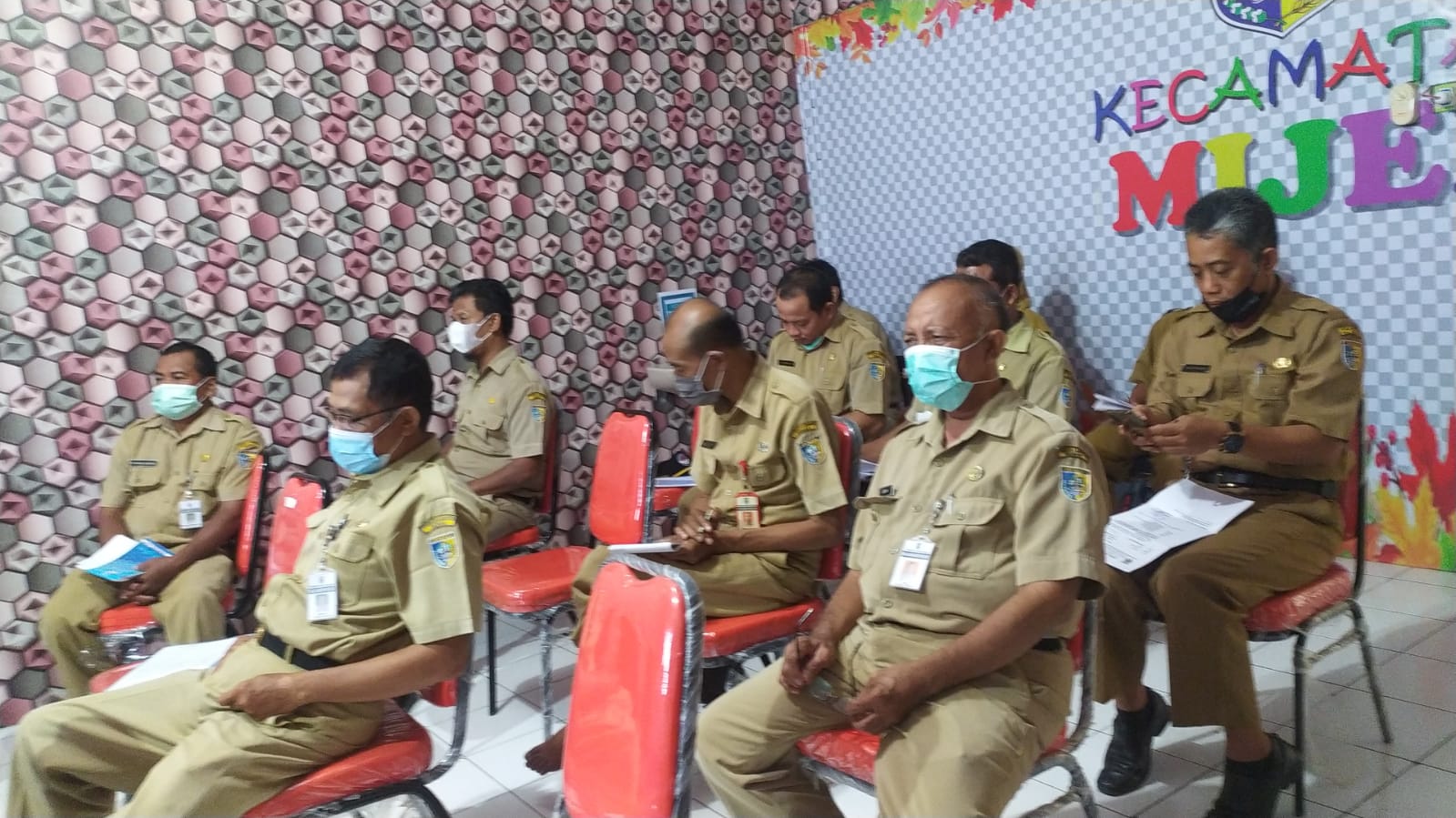 Hari Senin tanggal 8 Nopember 2021 di ruang Mijen Meeting Room ( MMR ) setiap hari senin setelah apel pagi melaksanakan Rapat koordinasi Sekretaris Desa bersama pejabat struktural Kecamatan Mijen dan Pelaksana Kecamatan Mijen, hadir dalam Kegiatan tersebut Camat Mijen, Sekretaris Kecamatan, Kasi dan Staf Kecamatan Mijen serta Sekretaris Desa se Kecamatan Mijen, kegiatan rapat koordinasi Sekretaris Desa se Kecamatan Mijen rutin di laksanakan setiap hari Senin setelah apel pagi, kegiatan ini bertujuan untuk saling shearing antara Pemerintah Kecamatan dengan Pemerintah Desa , dan juga setiap Kasi Kecamatan menyampaikan Informasi sesuai tupoksinya dan juga informasi yang di dapat dari Pemerintah Kabupaten untuk segera di sampaikan kepada Desa untuk segera di tindak lanjuti,kegiatan ini tetap mematuhi protokol kesehatan dengan selalu memakai masker, mencuci tangan dan menjaga jarak.