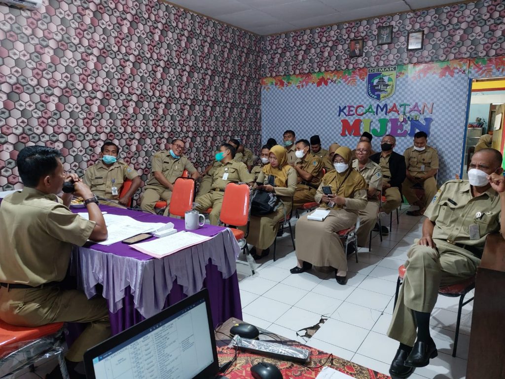 Hari Senin tanggal 20 Juni 2022 bertempat di ruang Mijen Meeting room ( MMR ) Kecamatan Mijen Kabupaten Demak setiap hari Senin setelah apel pagi melaksanakan kegiatan Rapat Koordinasi Sekretaris Desa se Kecamatan Mijen Kabupaten Demak dengan Pejabat Struktural, Pelaksana Kecamatan Mijen.