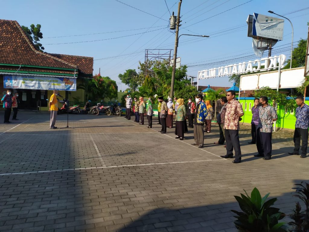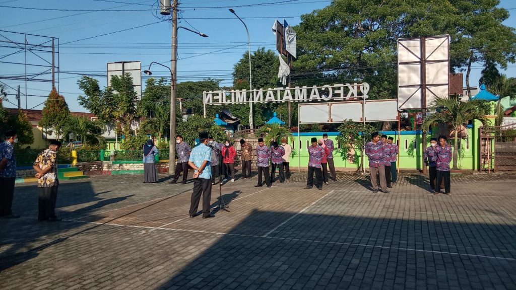 Apel pagi hari ini di pimpin oleh Sekretaris Kecamatan Mijen Bapak Purkanto,SH.MM ,dalam arahan beliau untuk tetap semangat dalam mengikuti apel pagi rutin setiap hari di halaman Kecamatan Mijen, selanjutnya untuk Perangkat Desa untuk penarikan Pajak Bumi dan Bangunan ( PBB – P2 ), sehingga PBB -P2 di Kecamatan Mijen bisa lunas tepat waktu,setiap hari kamis seluruh peserta apel pagi mendengarkan Lagu Kebangsaan Indonesia Raya.