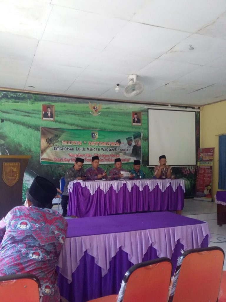 Dalam kegaiatan hari ini di pimpin oleh Sekretaris Kecamatan Mijen Bapak Purkanto,SH.MM dan untuk pembacaan Istigosah dan tahlil serta membaca al quran dan do’a di lakukan oleh Perangkat Desa dari Unsur Kasi Kesra /Modin Desa,kegaiatan ini bertujuan untuk mempererat tali silahturohmi antar pemrintah Kecamatan dan Pemerintah Desa, serta sebagai penguatan mental keagamaan bagi seluruh pegawai di lingkungan Kecamatan Mijen.