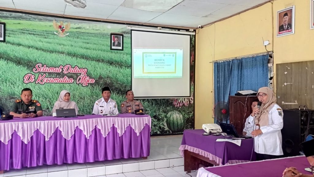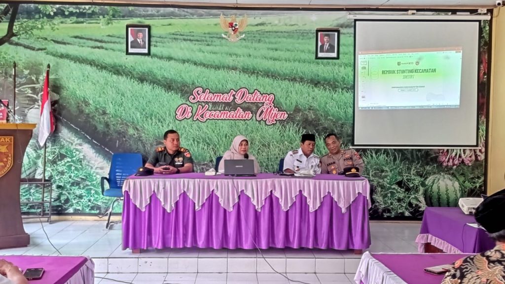 Kegiatan Stunting Tingkat Kecamatan Mijen hari Rabu tanggal 12 Maret 2025 bertempat di Aula Pertemuan Kecamatan Mijen Kabupaten Demak, hadir dalam Kabid Posyandu dan KB ( Ibu Indah Kusumawati ), Plt. Camat Mijen ( Bapak Haryoto,MH), Forkopimcam, Kepala Puskesmas Mijen 1 dan Puskesmas Mijen 2, Ahli Gizi Puskesmas Mijen 1 dan Puskesmas Mijen 2, Balai Penyuluh KB Kecamatan Mijen, Kepala KUA , Koordinator Pendamping Desa (PD), Kepala Desa dan Ketua BPD Desa Pasir dan Jleper .