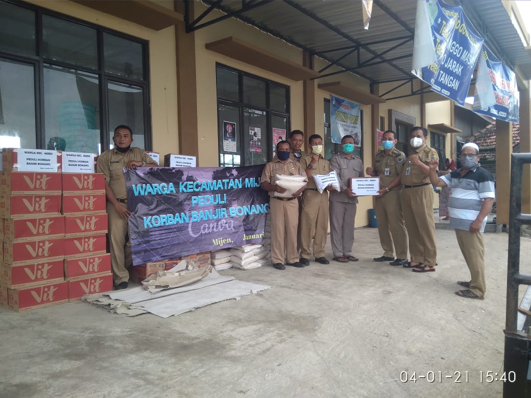 dilaksanakan pada hari senin tanggal 4 Januari 2021 pada Pukul 15.00 WIB, bantuan diserahkan langsung oleh Camat Mijen UNGGUH PRAKOSO,S.STP, M.Si beserta Sekcam PURKANTO,SH,MM, kasi Kesra, Kasi Permas dan Staf. Bantuan diterima langsung oleh Kepala Desa dan Bapak Camat Bonang